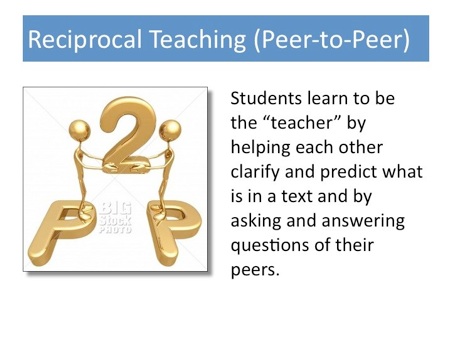 Reciprocal teaching consists of a set of strategies that are used to increase comprehension, promote collaboration, and foster meta-cognitive skills. Teachers and students take turns interacting with the text and leading various sections. The technique not only supports greater understanding of spoken and written texts, but also helps students monitor their own learning and thinking. ELLs can greatly benefit from the opportunities to use English in a supportive setting (pairs or small groups) where they can interact with authentic or adapted materials and practice their language skills while completing a meaningful task.