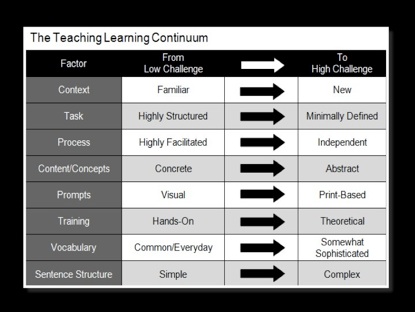 This structure is designed to help teachers plan instruction so that the information and the activities provided stay within the Instructional Zone of what students can handle. That is, students should be engaged in a level that is slightly above their current level of proficiency but should not be overwhelmed by new information and new tasks at the same time.